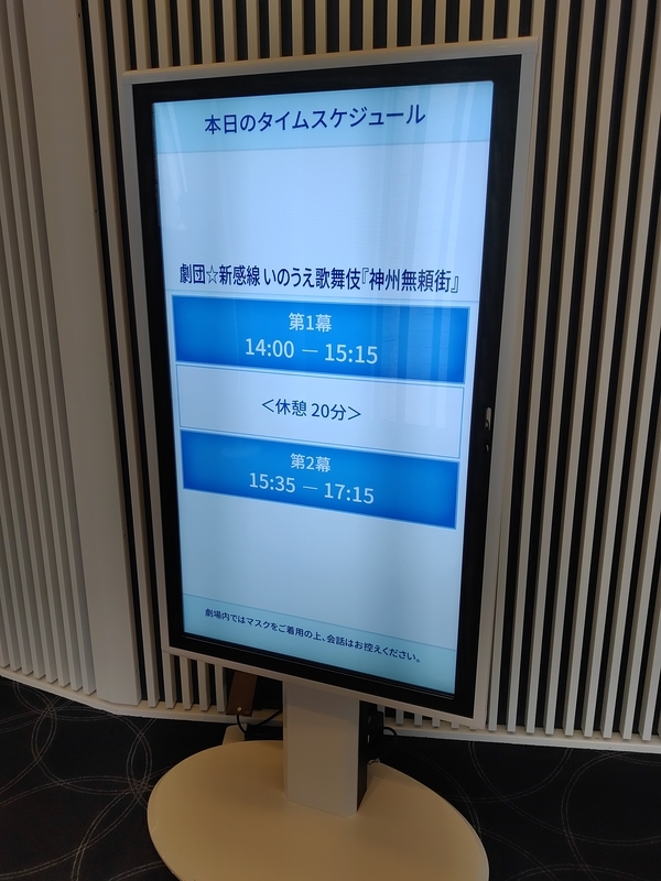 席は2階席下手側。この前とはちょうど真逆辺りのまたまた1列目でした。