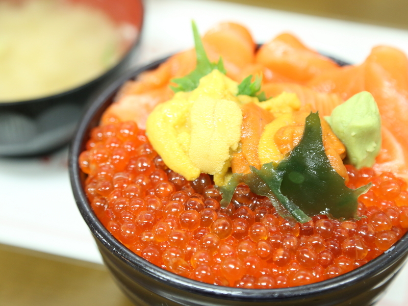 朝食に食べたいくらとサーモンとウニの海鮮丼!ま〜〜〜〜じで信じられんほど美味かった……